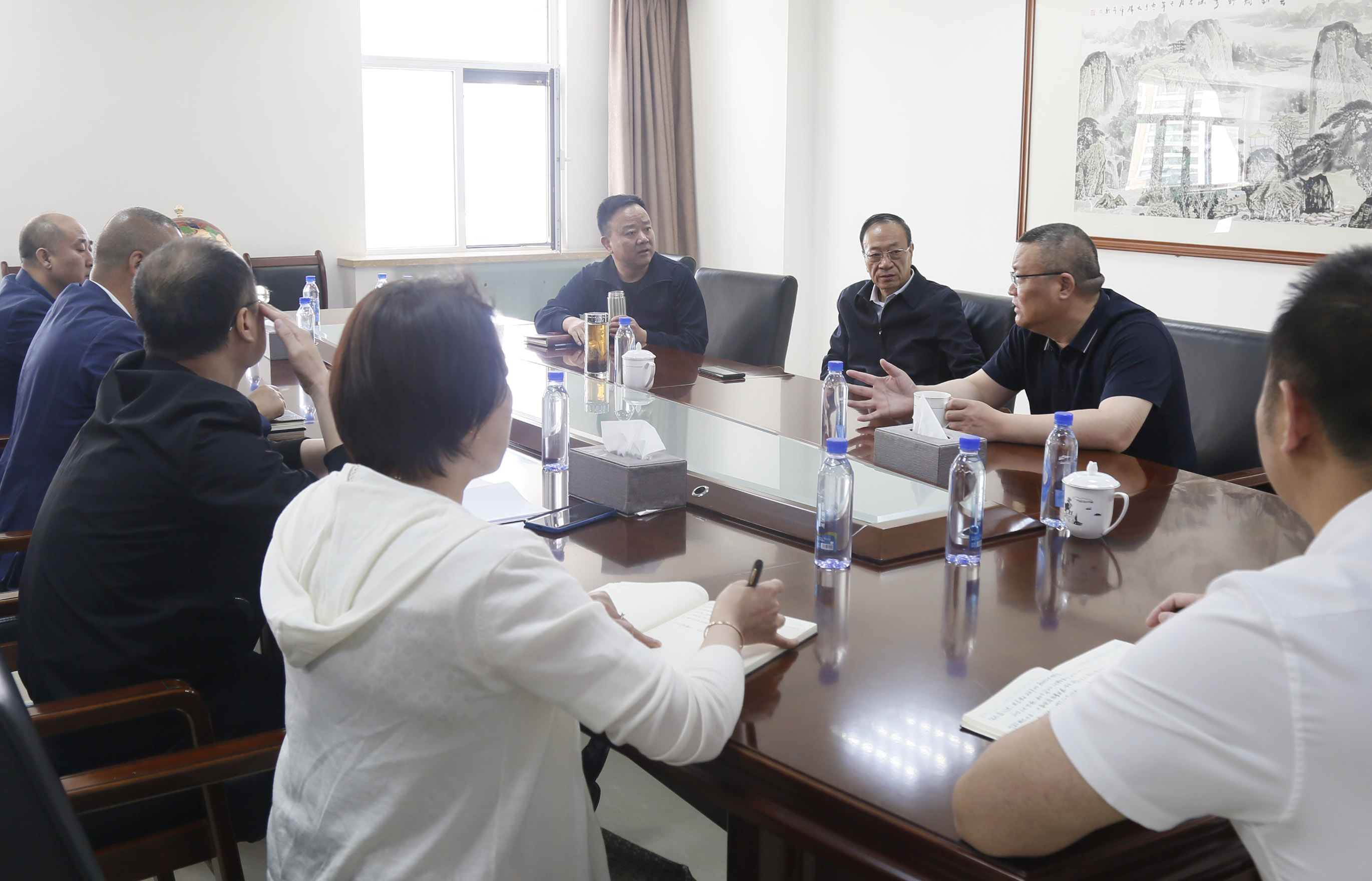 王彬書記對張永才董事長一行來訪表示熱烈歡迎,并就蘭州黃河生態(tài)旅游開發(fā)集團在項目建設等方面給予蘭州市政集團的信任和支持表示感謝。王彬指出,蘭州市政集團成功中標由蘭州黃河生態(tài)旅游開發(fā)集團實施的蘭州交通產(chǎn)業(yè)園項目,標志著雙方在項目共建方面取得了良好的開端,希望在雙方協(xié)作配合下,加快解決影響項目正常推進的因素,共同推進項目早日開工建設,同時在現(xiàn)有合作基礎上,發(fā)揮各自優(yōu)勢,進一步深化合作,促進共同發(fā)展。