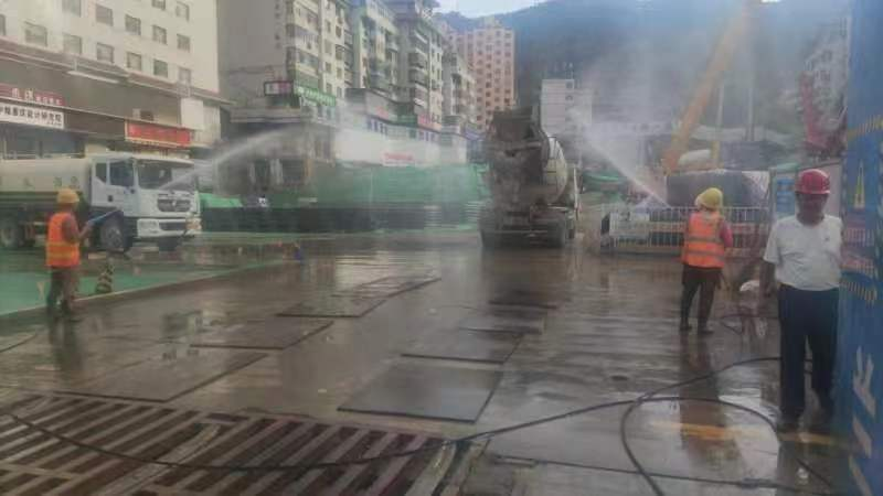 為確保大氣污染防治工作落到實處,增強項目參建人員大氣污染治理防范意識,保證項目建設(shè)順利進行,四公司主要領(lǐng)導(dǎo)靠前指揮,與蘭州市環(huán)保局、城市執(zhí)法局、質(zhì)監(jiān)站等單位溝通協(xié)調(diào),結(jié)合項目地處鬧市區(qū)實際,制定大氣污染防治措施,并組織項目部全體人員召開大氣污染整治專題會議,對大氣污染防治工作的相關(guān)要求進行部署和落實。一是全面落實公司各項決策部署和子(分)公司《關(guān)于進一步加強施工大氣污染管理工作的通知》要求,提高思想認(rèn)識,轉(zhuǎn)變工作作風(fēng),落實工作職責(zé),切實抓緊抓實抓好各項措施落實落細(xì),以實際舉措防治大氣污染,確??諝赓|(zhì)量持續(xù)改善。二是加強宣傳引導(dǎo),發(fā)揮黨建工作引領(lǐng)作用,提高政治站位,緊盯目標(biāo)任務(wù),突出重點工作,堅持目標(biāo)導(dǎo)向,劃分責(zé)任區(qū),責(zé)任到人,強化考核問效,為安全文明施工生產(chǎn)提供保障。三是狠抓揚塵治理。各參建員工要牢固樹立大局意識,責(zé)任意識、擔(dān)當(dāng)意識,嚴(yán)格落實“六個百分百”要求,齊抓共管,加強施工現(xiàn)場、道路揚塵管控,督促各施工作業(yè)隊文明施工,嚴(yán)格落實各項防塵抑塵降塵措施,促進項目建設(shè)順利推進。四是加大揚塵污染治理物資設(shè)備的投入。項目部在施工周邊居民樓上安裝噴淋系統(tǒng)噴霧降塵,施工現(xiàn)場發(fā)泡機噴水抑制塵土飛揚,有效減少揚塵污染。施工場區(qū)道路、加工區(qū)地面進行硬化處理,裸露場地進行全覆蓋,鉆孔泥漿自然脫水固化后及時使用封閉式運輸車輛外運。車輛出入口安裝車輛自動沖洗裝置,專人負(fù)責(zé),檢查車輛外部、底盤、輪胎處不得沾有污物和泥土,嚴(yán)禁車輛帶泥上路。五是加大巡查和預(yù)防力度。項目部安排專人加強對揚塵污染源的巡查和檢測,不定時進行場地清潔、灑水,及時處理揚塵污染問題。